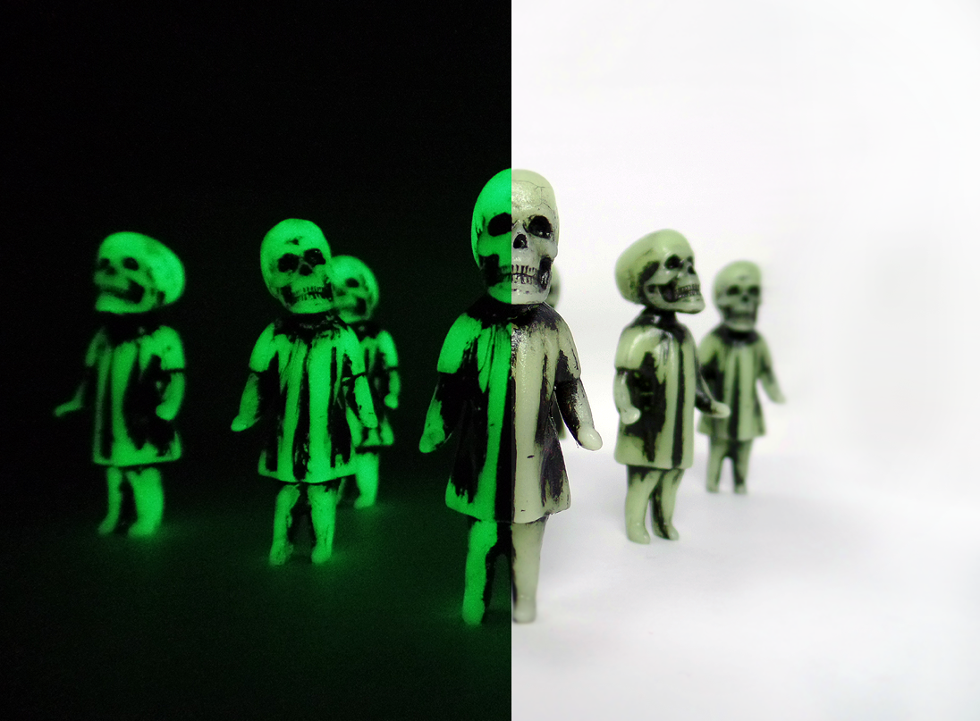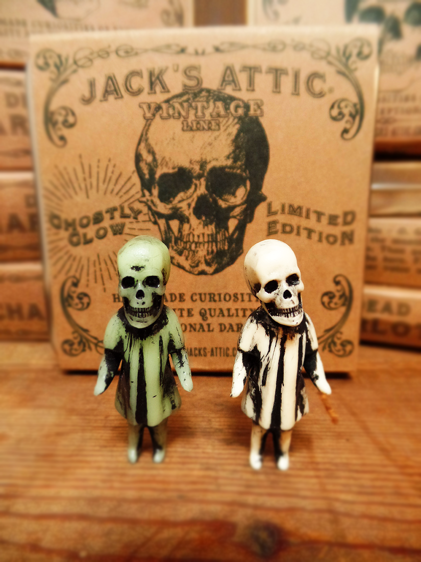 Packaged in a hinged, metal tin this set features a standard “bone” Dead Charlotte figure in addition to a ghostly glow-in-the-dark version as well.