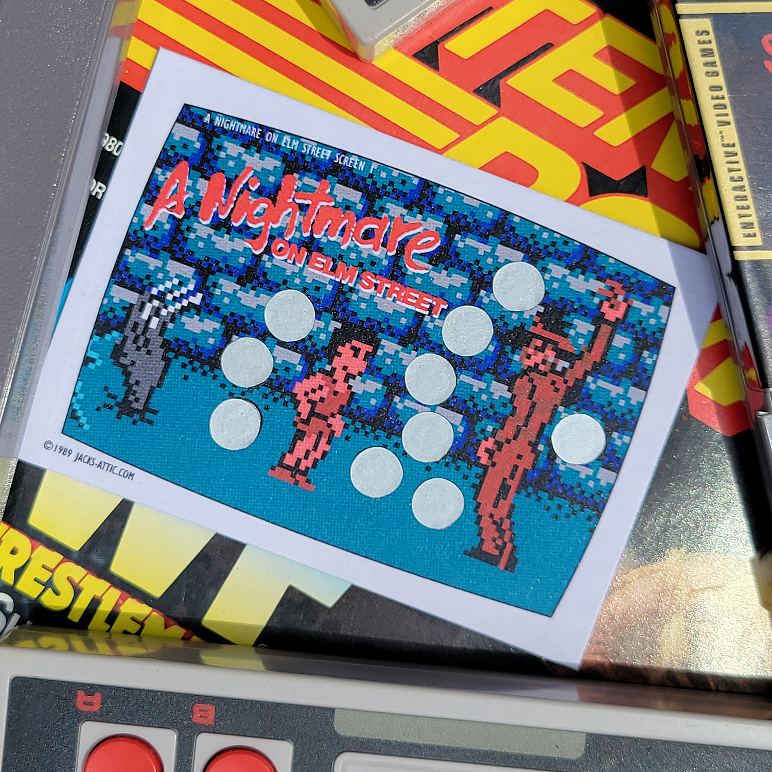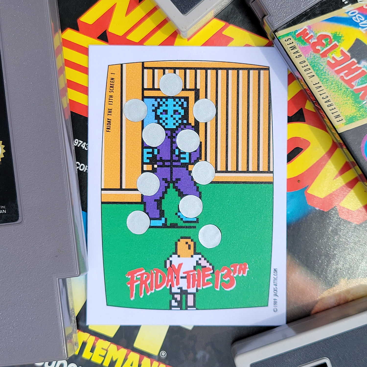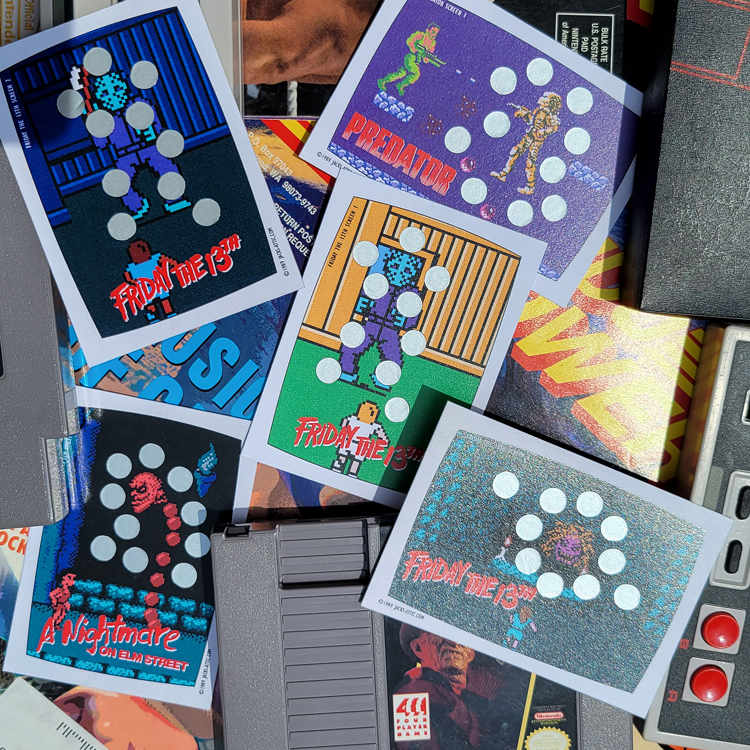Based on the 1989 Topps Nintendo Game Pack “Scratch-Off” cards, this loving tribute showcases some of the slim but memorable horror offerings on everyone’s favorite 8-bit gaming system.