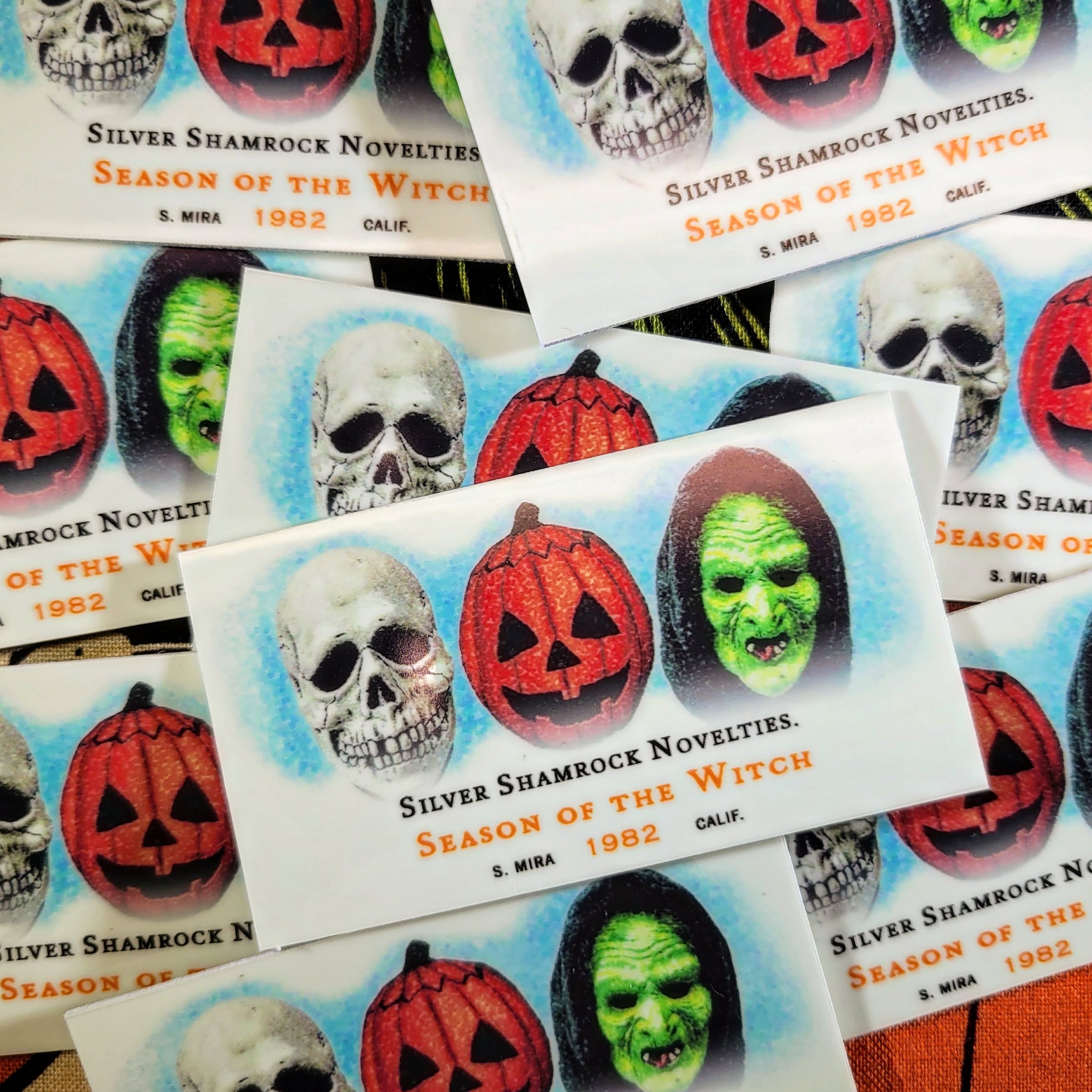 This mini sized, retro style trading card from Jack's Attic features the Pumpkin, Skull and Witch masks from Halloween III: Season of the Witch.