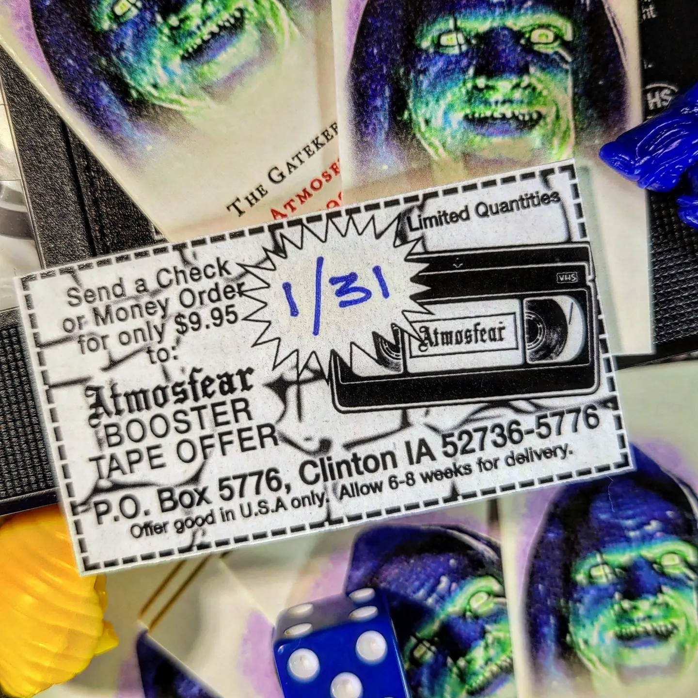 This limited edition retro style, mini custom trading card pays homage to the pinnacle of horror themed VCR board games of the 1990s.