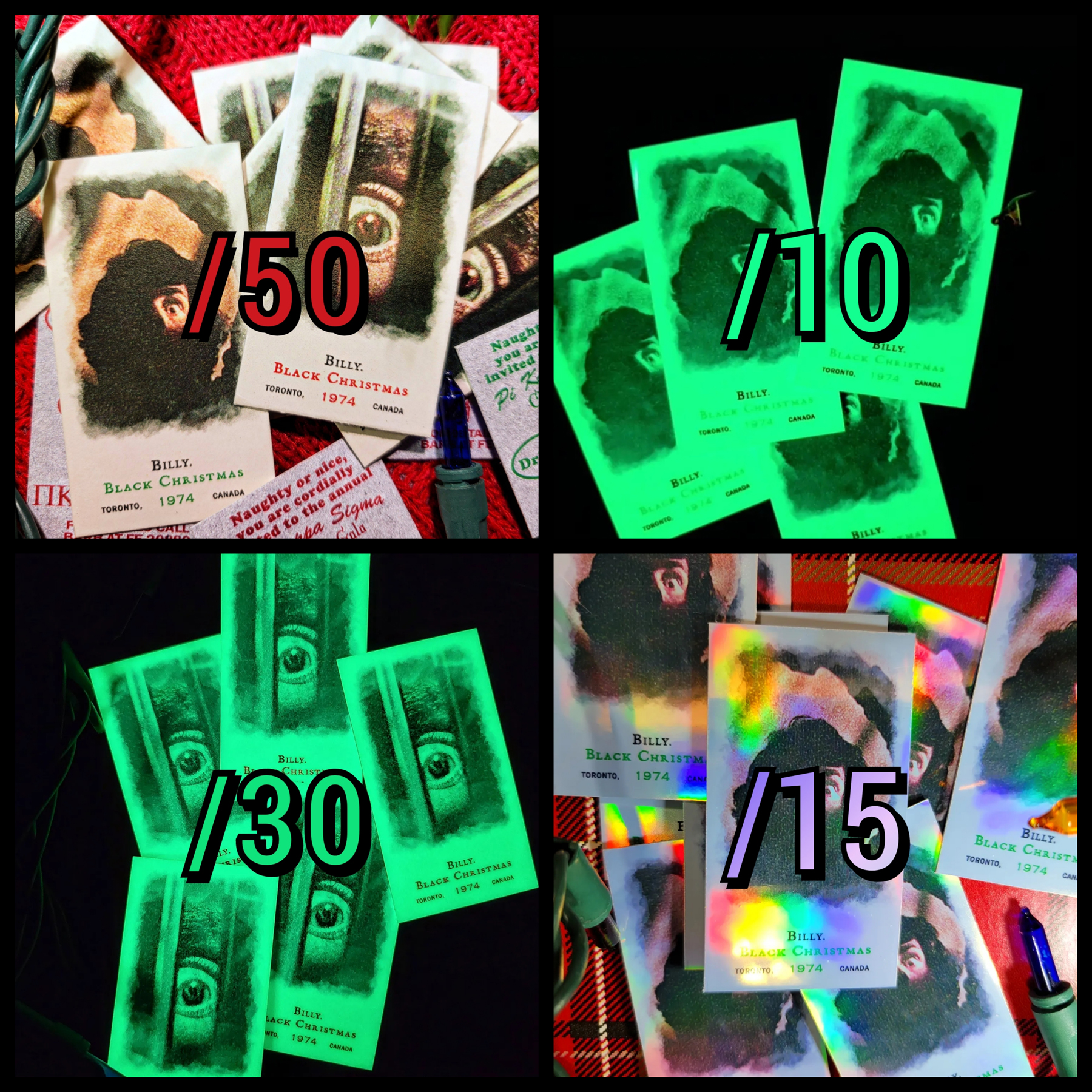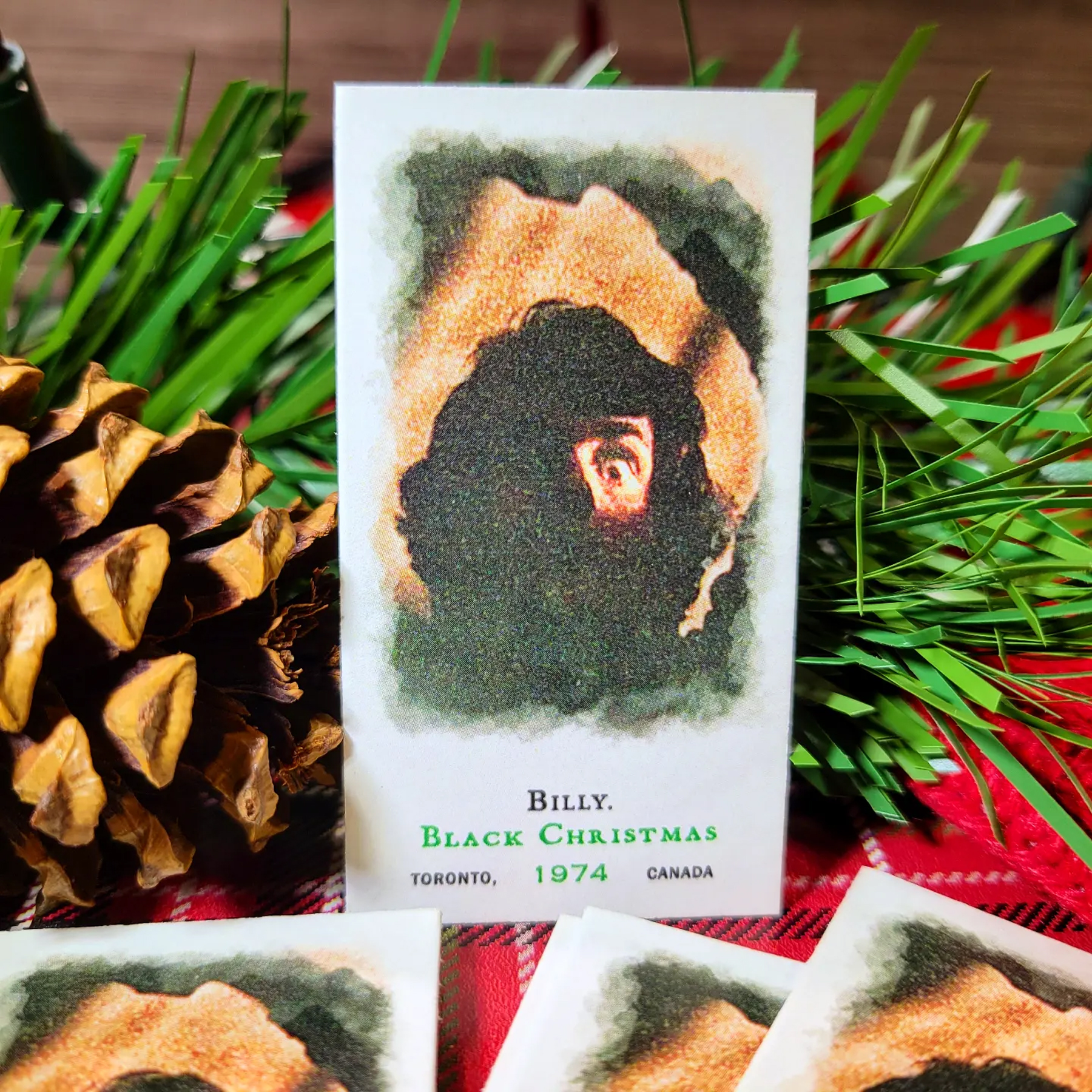 This custom, retro style, mini trading card pays homage to one of the best and earliest Christmas horror films, Black Christmas (1974). The film that paved the way for Halloween (1978) and a whole genre of slasher films that followed.