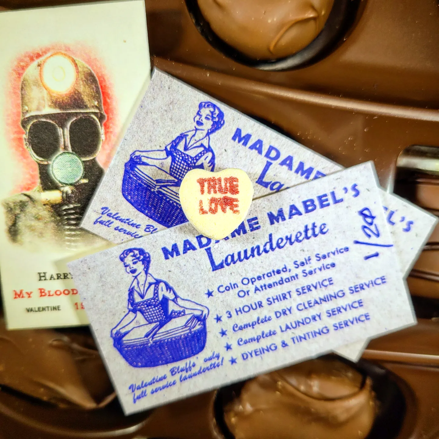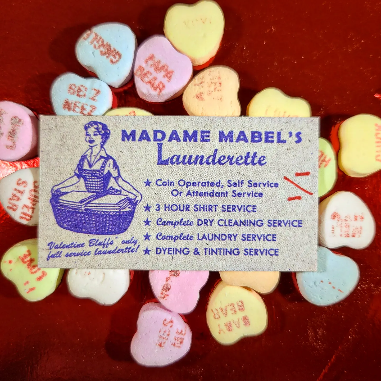 The paperstock base variant is available with two (2) distinct backs: the Madame Mabel's Launderette back and the Hanniger Mining Co. back. Each hand-numbered to only twenty (20) cards.