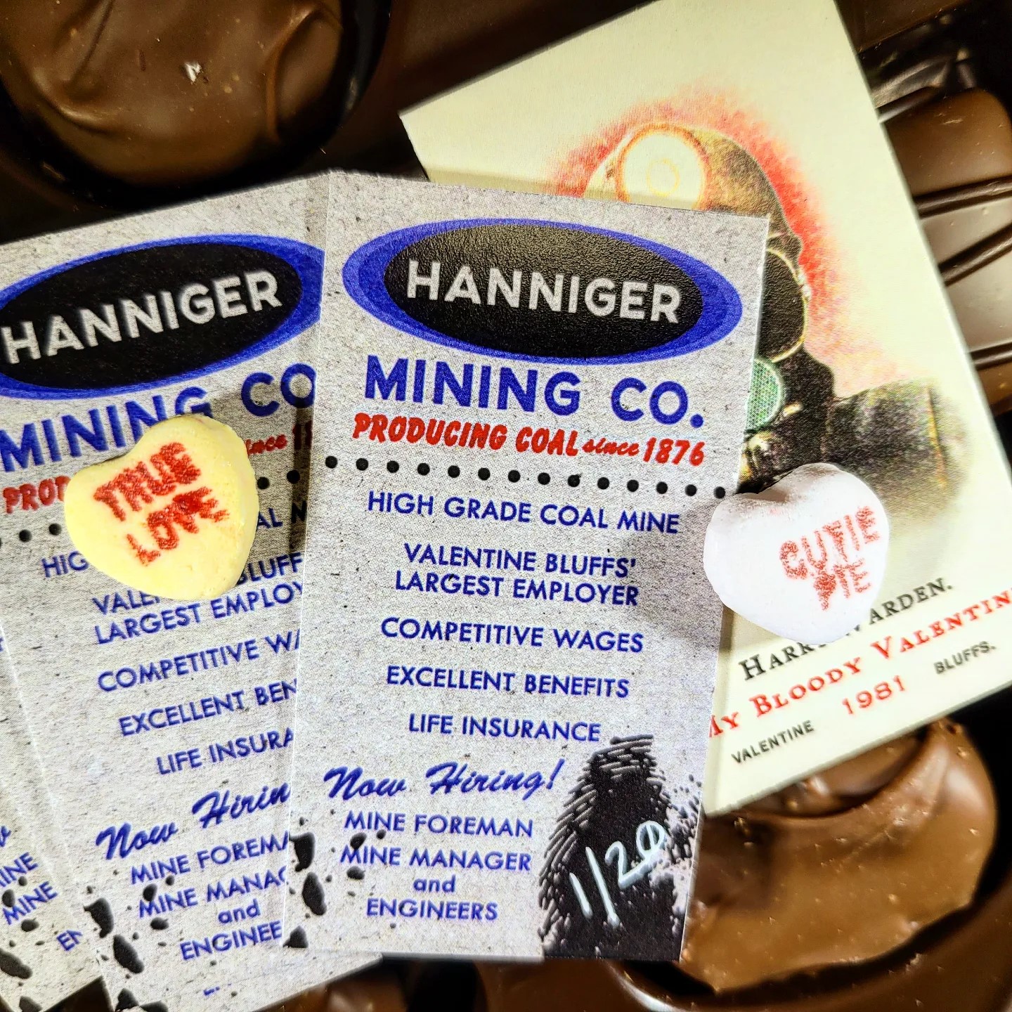 "Every February 14th, Harry comes back to town, his pickaxe stained with blood, waiting in the shadows of the Hanniger Mine, just for someone to kill, should they not heed his warning. IT COULD BE YOU!"
