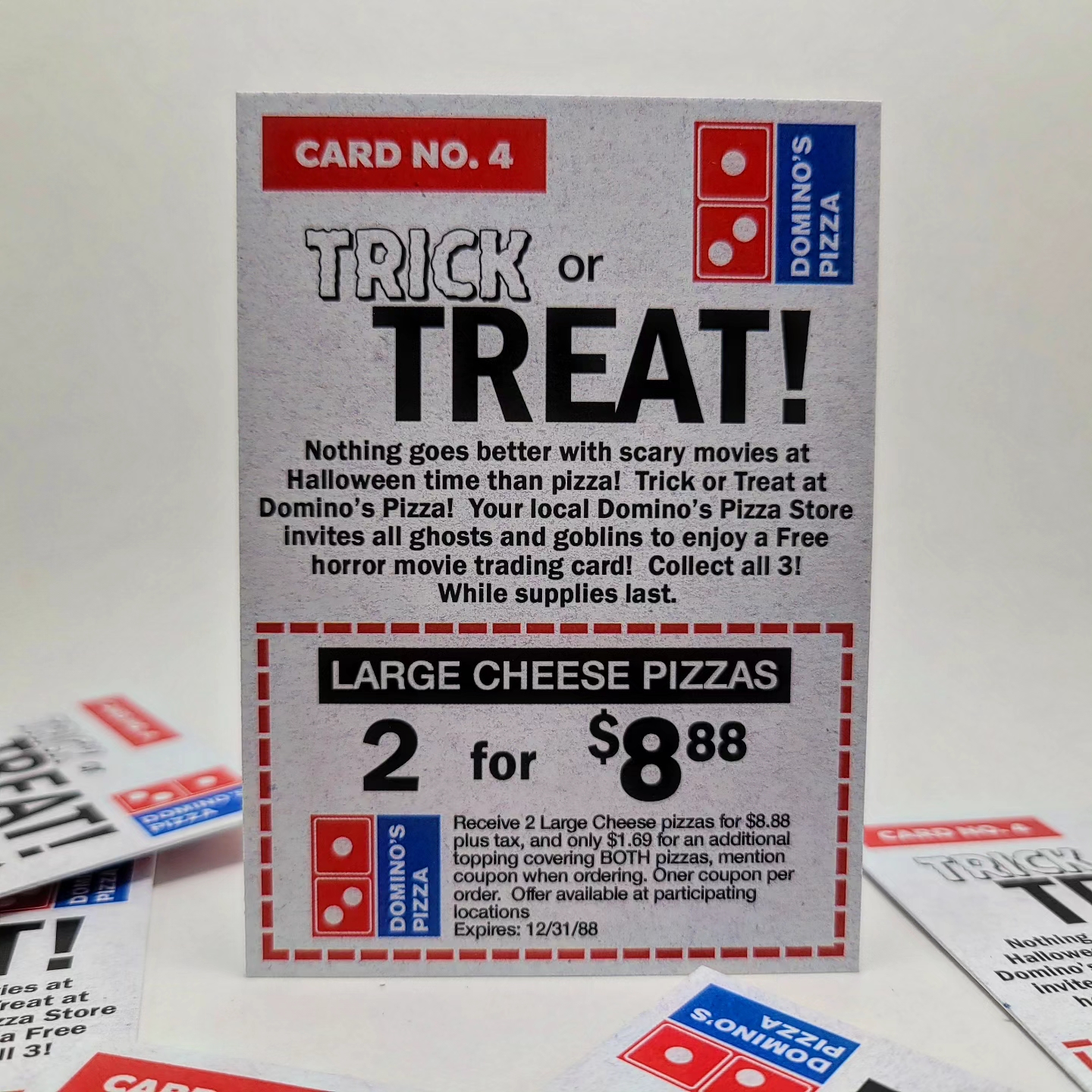 Remember Halloween of 1988? Walking into a Domino's Pizza and with your large three topping pizza you'd also get a pack of horror movie trading cards? Wasn't that awesome?