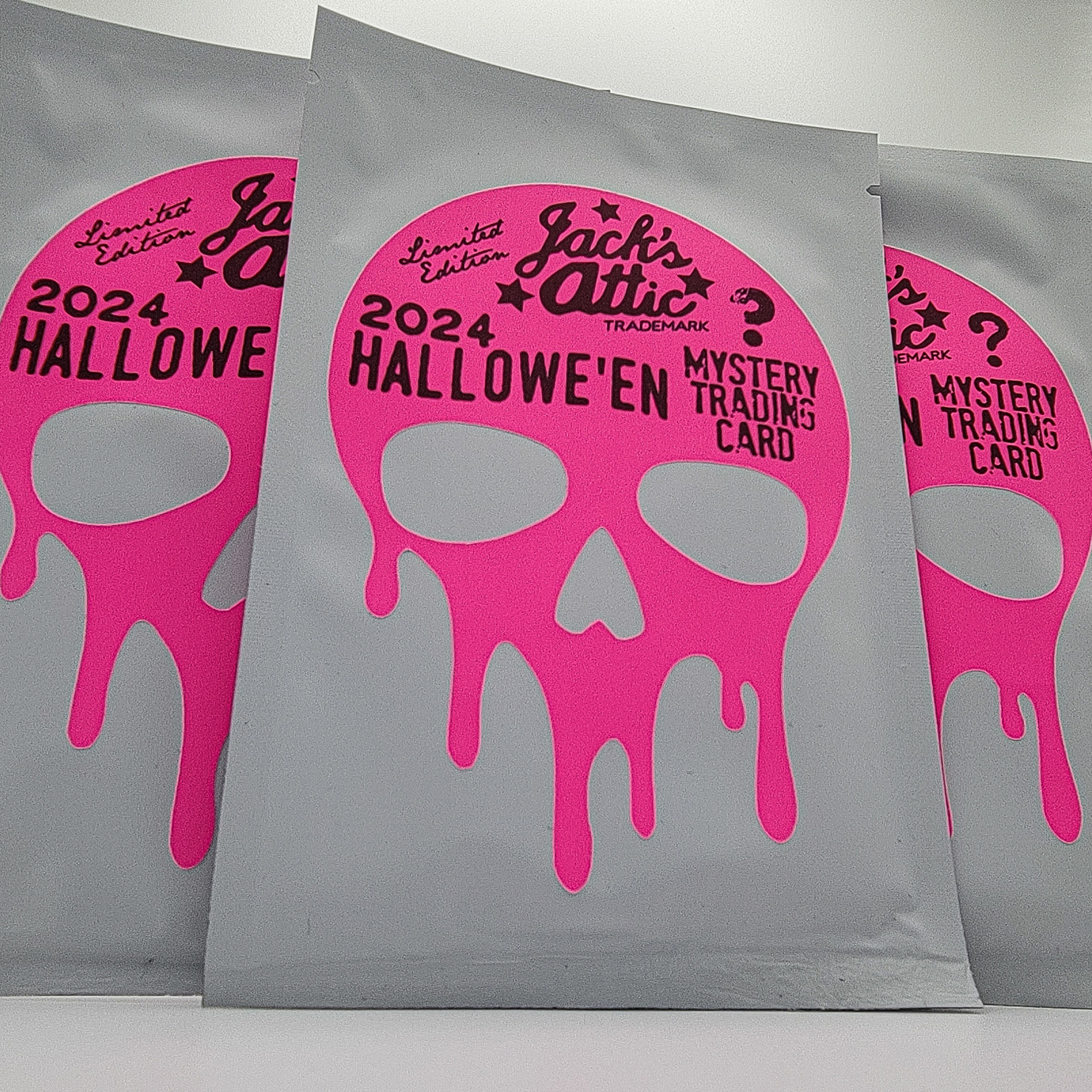 These mystery packs contain one (1) Halloween themed custom trading card.