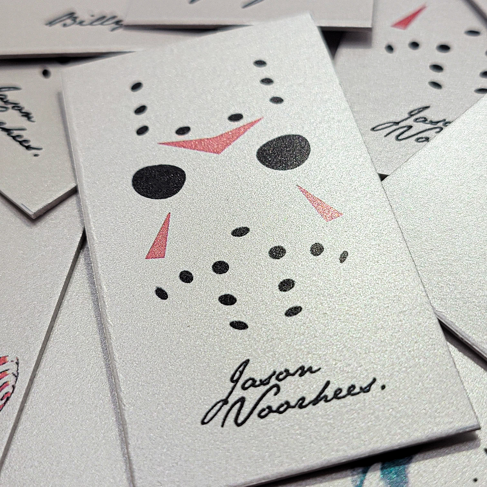 Each card is a simple yet elegant representation of each of the orders most prolific members. Printed on a semi-lustrous, silver artist paper, the cards bring to mind the various knives, machetes and other bladed instruments these individuals utilize to balance the scales between good and evil.