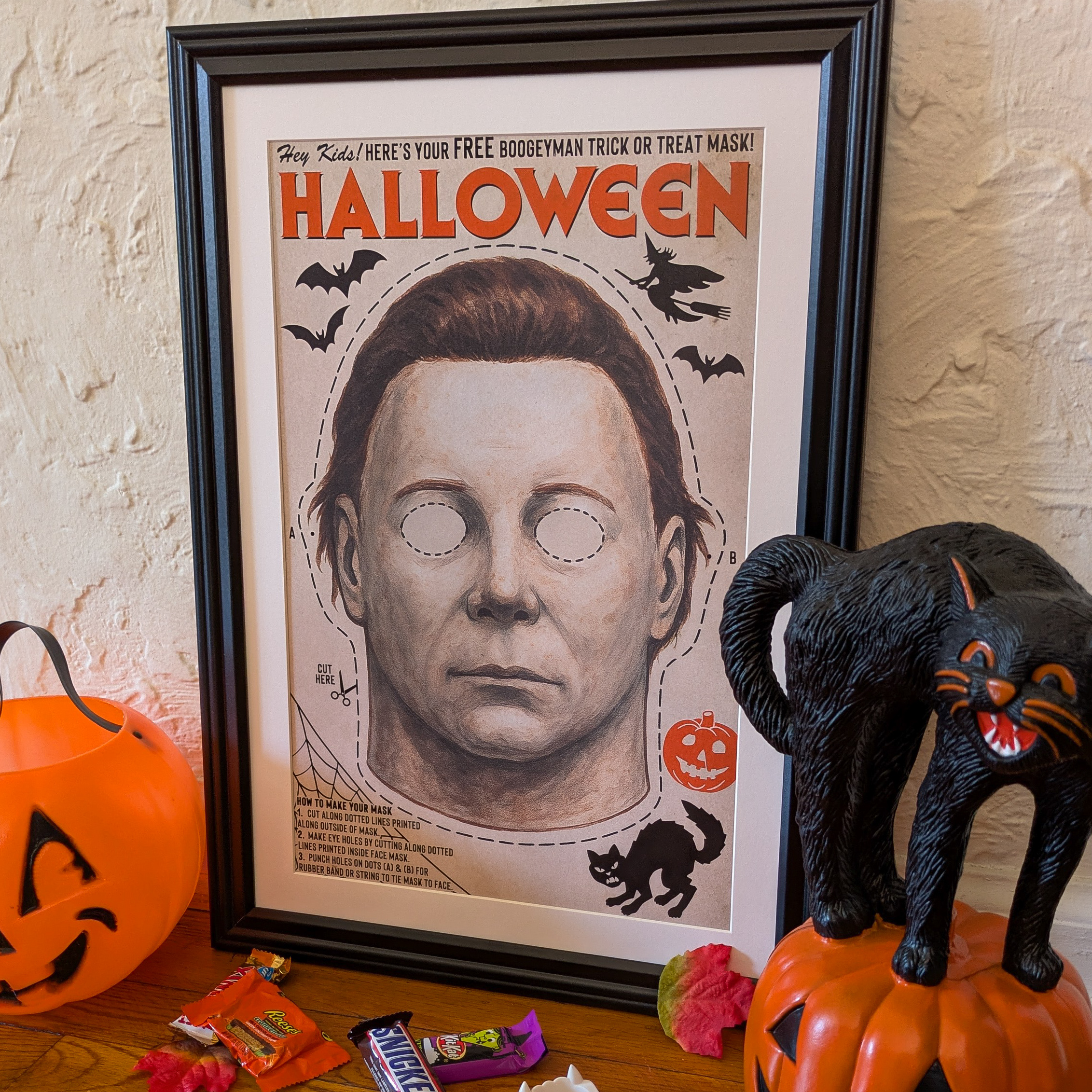 In my never ending search for vintage Halloween ephemera in a bid to archive as much of it as I can, I recently found a vintage print of a cut out Boogeyman Halloween mask that was being given out during the month of October at Nichol's Hardware Store in Haddonfield, Illinois, back in 1978.