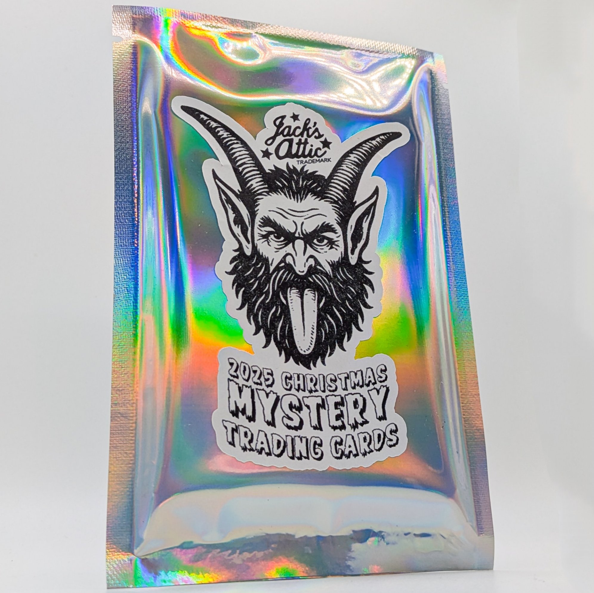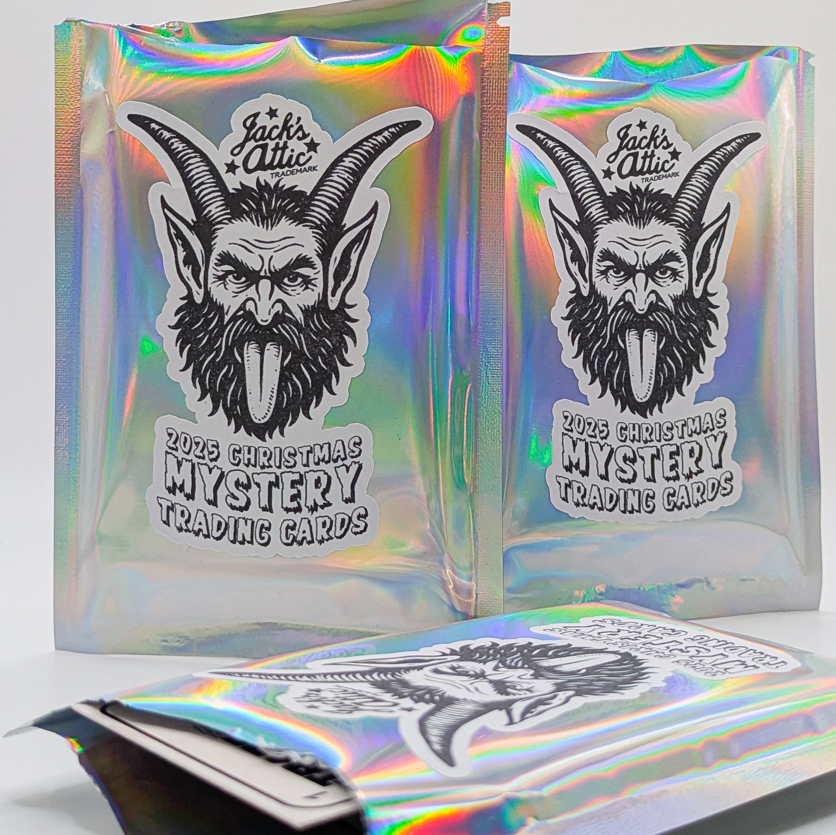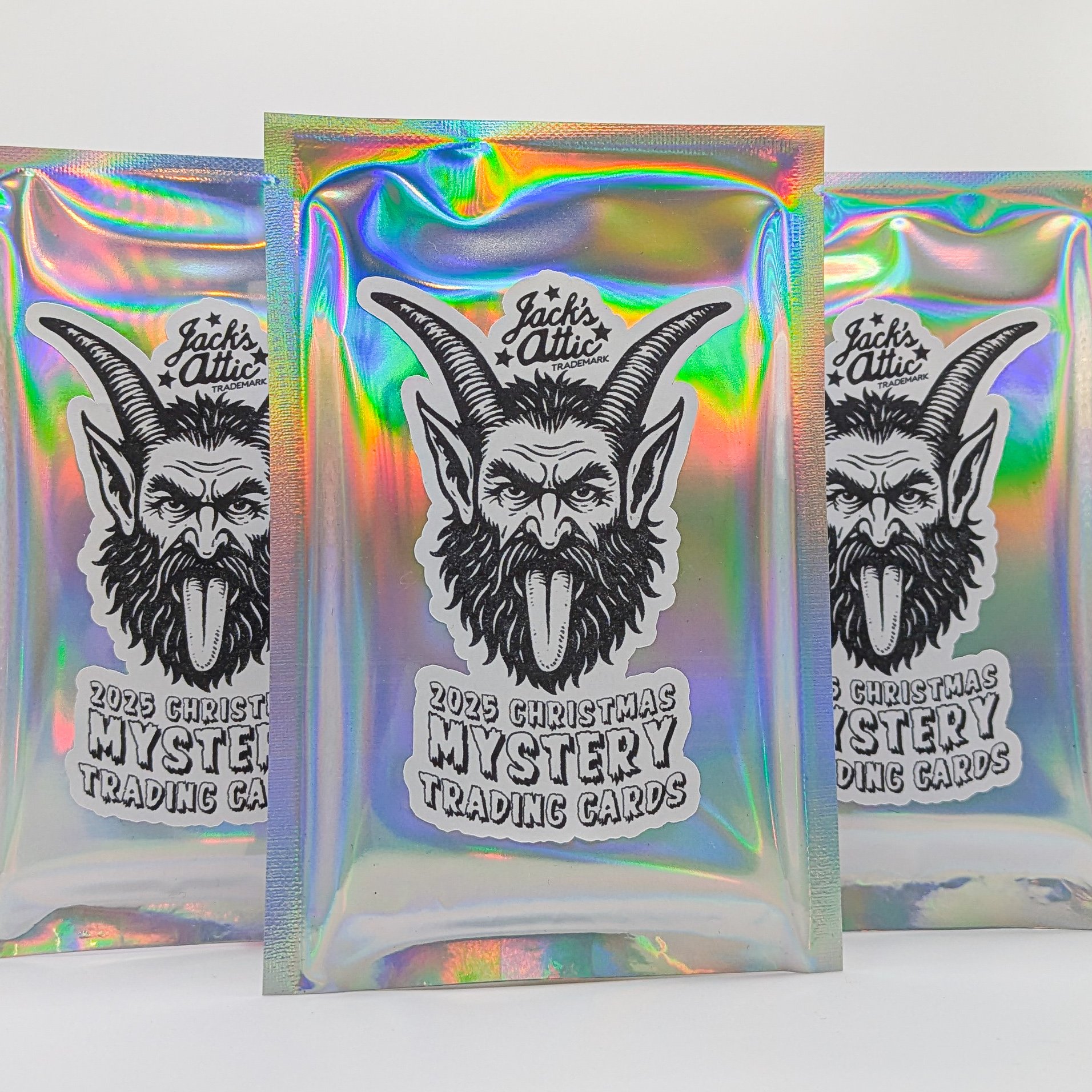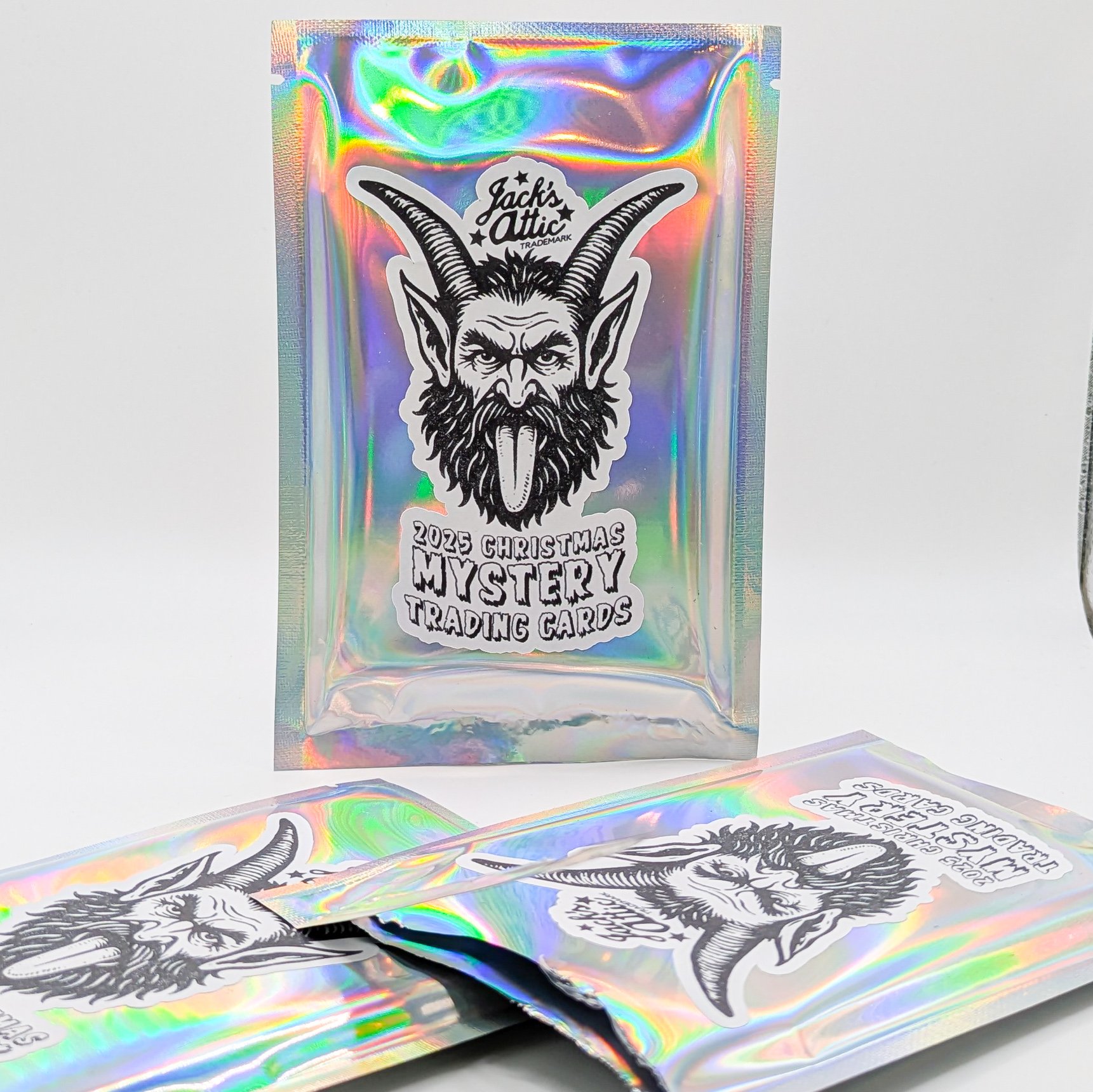 Limited to 25 total packs, each pack contains three (3) all-new, Christmas horror–themed trading cards. And as a little holiday “gift,” select packs will include bonus custom cards unearthed from the Jack’s Attic vault—rare, unreleased specimens that haven’t seen the light of day.